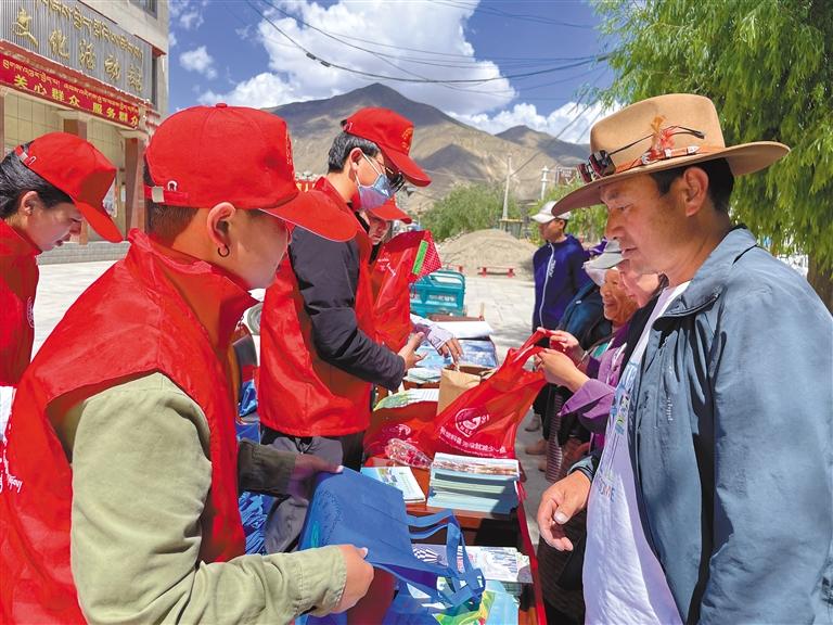 山南市新時代文明實踐志愿者在開展環保宣傳活動
