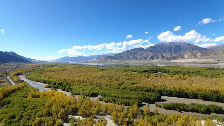 近年來(lái),山南還利用市場(chǎng)機(jī)制,引入億利集團(tuán)、蒙草集團(tuán)等科技公司進(jìn)駐雅江兩岸,為防沙治沙注入了高科技成果,沙化土地?cái)U(kuò)張趨勢(shì)有效減緩,生態(tài)環(huán)境得到積極改善。如今,雅魯藏布江山南段北岸已被郁郁蔥蔥的林木覆蓋,形成了一條“綠色長(zhǎng)廊”。