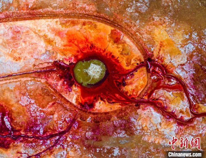 圖為無人機航拍“惡魔之眼”艾肯泉。 莫啟明 攝
