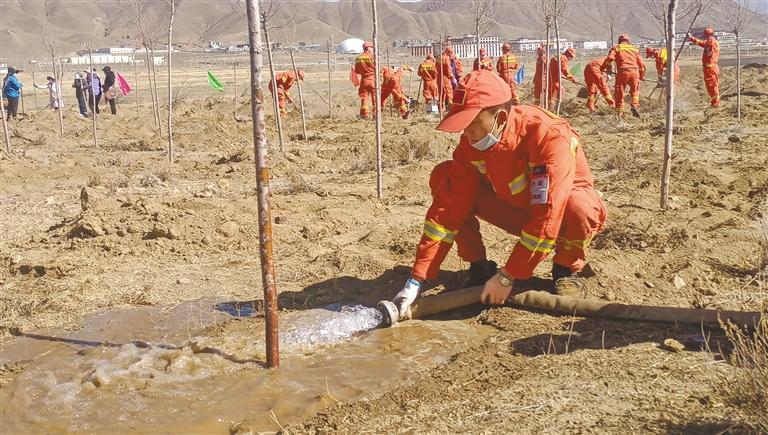 日喀則森林消防為駐地增添一抹新綠