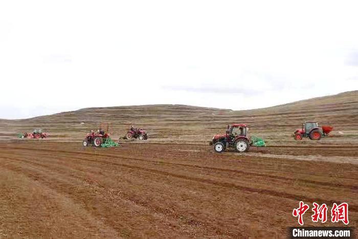 圖為同仁市黃乃亥鄉正在機械化種植黑青稞。 天津援青指揮部供圖