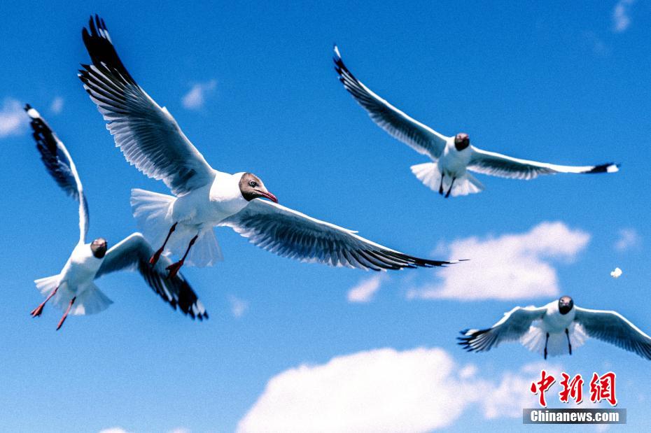 位于西藏阿里地區日土縣境內的班公湖又稱措木昂拉仁波,藏語意為“長脖子天鵝”,湖面海拔4240米,長約155公里,南北寬約15公里,水深57米,為高寒氣候,湖內有世界上海拔最高的鳥島。連日來,這里晴空萬里,在藍寶石般的湖面上,小白鳥自由游弋。鳥瞰班公湖,景色如畫。貢桑拉姆 大象 嘎瑪次仁 攝