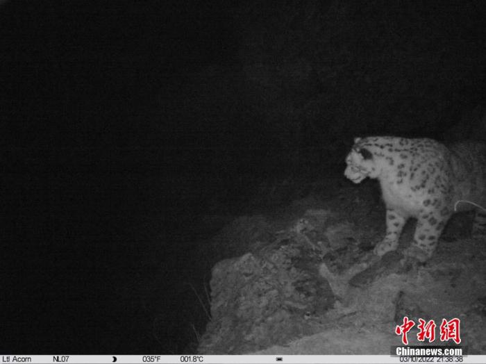 紅外相機監測照片顯示,今年3月初,一只成年雪豹走到了一臺位于山脊線上的紅外相機觸發陷阱前面,對紅外相機展現出了極大的熱情,不斷上前用鼻子觸碰,并且在鏡頭前呼出了一股熱氣。