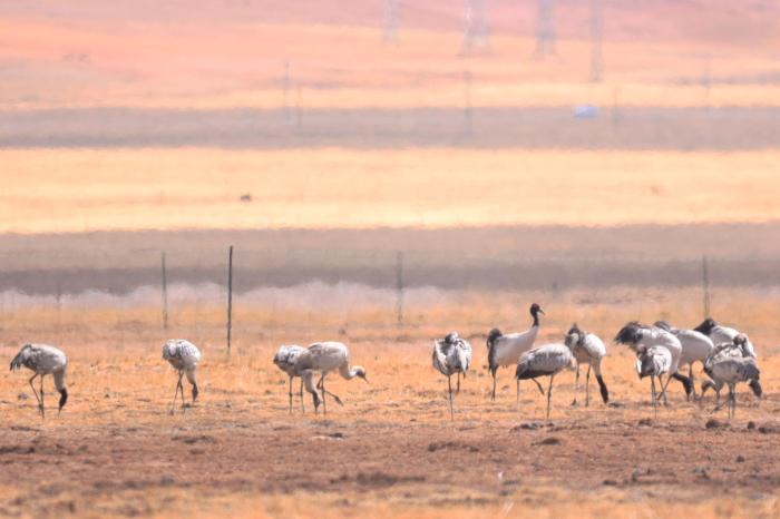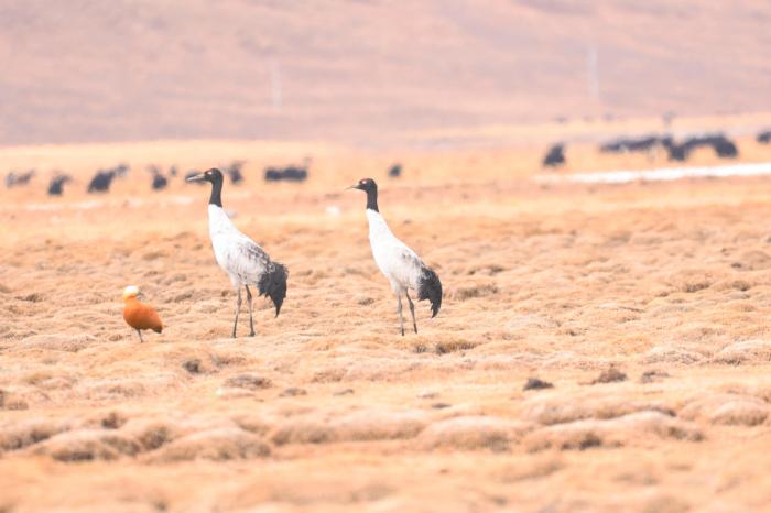 據介紹,此次調查共記錄到鳥類44種8000余只,隸屬11目22科。其中,國家Ⅰ級保護動物4種,分別為黑頸鶴、胡兀鷲、草原雕、獵隼;國家Ⅱ級保護動物6種,分別為蓑羽鶴、灰鶴、高山兀鷲、大鵟、縱紋腹小鸮、紅隼;列入世界自然保護聯盟瀕危物種紅色名錄(IUCN),瀕危2種、易危1種、近危3種、無危37種。