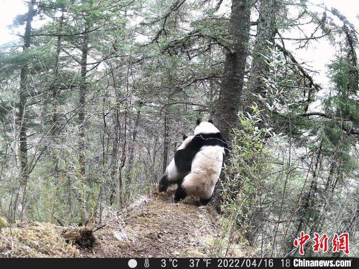 為了打敗競爭者,平時呆頭呆腦、憨態可掬,有點傻萌的“滾滾”秒變“功夫熊貓”,電光火石的出拳速度和直取要害的攻擊路線,精彩激烈的拳擊、摔跤、柔術等看家本領統統用上,甚至為了提高自身氣勢,不惜使出“獅吼功”,試圖在氣勢上壓倒競爭對手。而這一切只是為了選擇優秀的基因,以利于大熊貓種群在嚴酷的自然環境中繁衍生存。此次監測視頻中,出現3只大熊貓同框畫面,其中兩只雄性大熊貓因爭奪交配權出現吼叫、打斗行為;一段視頻中,出現兩只大熊貓“打情罵俏”求偶交配畫面。
