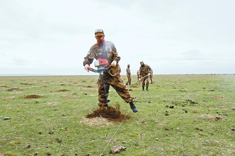 “這苗子比較好,每穴栽?xún)扇镁涂梢粤?。?月22日下午,在阿壩州若爾蓋縣麥溪鄉(xiāng)澤修村的黃河干流邊,若爾蓋縣黃河護(hù)河隊(duì)大隊(duì)長(zhǎng)能州向隊(duì)員們喊話。這是若爾蓋縣黃河護(hù)河隊(duì)日常工作的一幕。