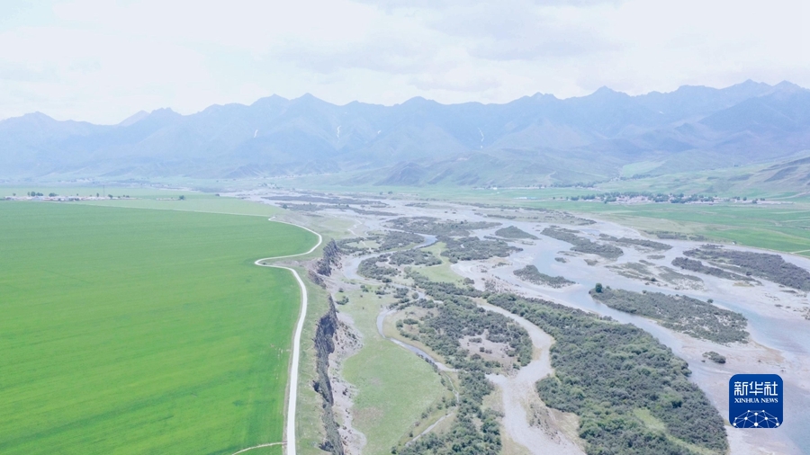 這是6月16日拍攝的大通河門源段現狀(無人機照片)。新華社記者 周盛盛 攝