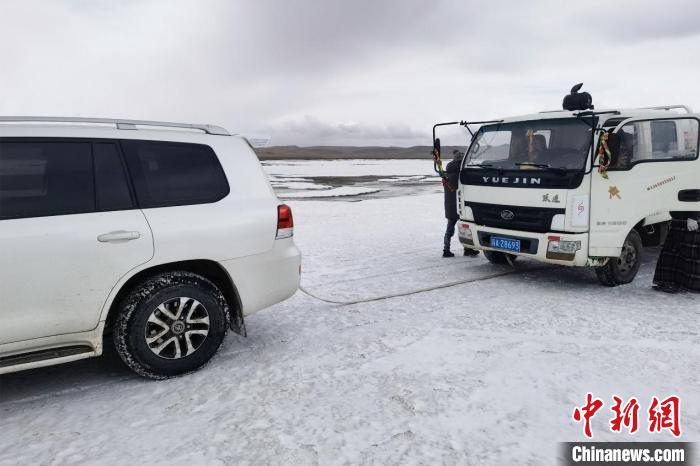 這段路前100公里是公路,后400多公里是碎石路。好在運氣不錯,天氣較冷,沼澤泥路還沒有化凍,車輛通過性比較高。即便如此,一些地方貨車還是會陷進泥潭,需要用小車拖拽才能前行。快到站點附近有一條河,只能憑大致方向牽引著貨車前進,這是整個路程中最難走的一段。全程走了近12個小時,回想這500多公里的路程,馬洪杰還是心有余悸。