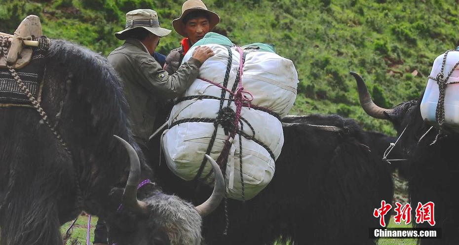 圖為牧民讓牦牛背上“行李”轉場。 仁青多杰 攝