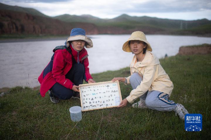 白天,她們奔走在海拔4000多米的青藏高原,越高山、蹚急流,只為捕捉江源地區(qū)的昆蟲;深夜,她們不知疲倦,架起“黑光燈”,誘捕在夜間活躍的高原特有飛蛾……這是江源科考隊中,張國月和樊雅東兩名女隊員的工作常態(tài)。