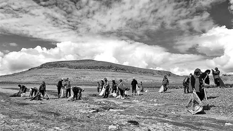 錯母折林湖位于日喀則市定結縣多布扎鄉(xiāng)境內(nèi),總面積達80平方公里,占多布扎鄉(xiāng)總面積的八分之一,是定結縣境內(nèi)最大的高原咸水湖。近日,多布扎鄉(xiāng)扎西孜村組織駐村工作隊、黨員、團員、婦女代表共34人,深入開展“守衛(wèi)綠水青山·環(huán)湖衛(wèi)生整治”主題志愿行動,守護錯母折林湖優(yōu)美風景。