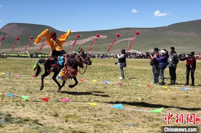 圖為民族傳統馬術表演。 祁繡娟 攝