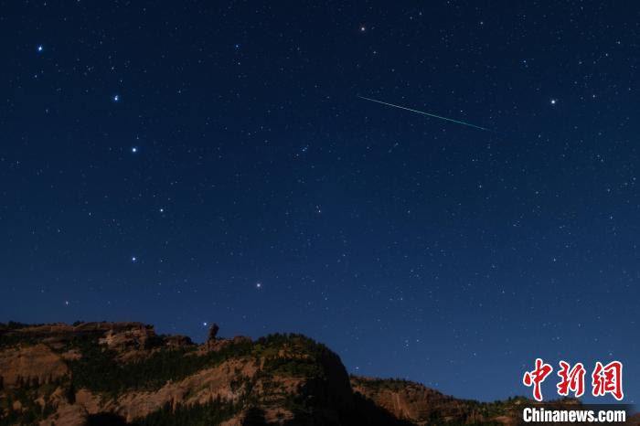 圖為昂賽大峽谷內拍攝的英仙座流星。 秋筆 攝