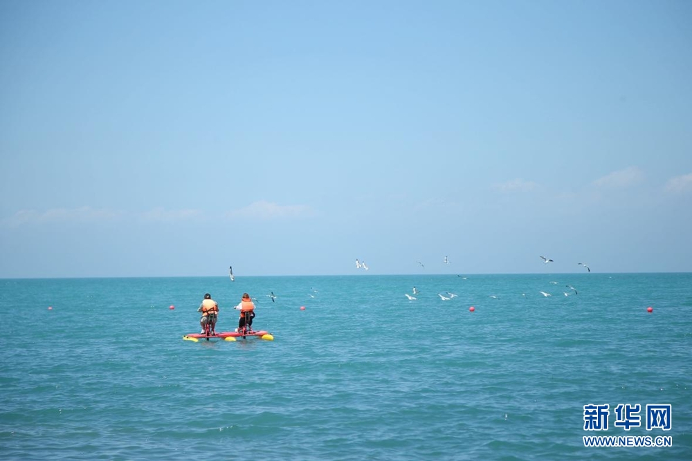 8月8日,游客在青海湖體驗水上娛樂項目。新華網(wǎng) 馬洪婷 攝