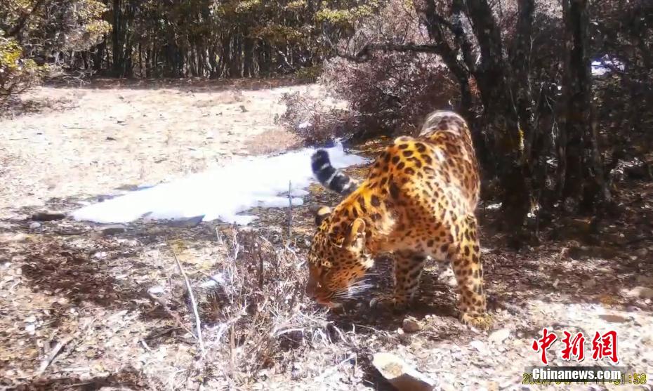 近日,木里縣博窩鄉(xiāng)野保監(jiān)測團(tuán)隊(duì),發(fā)布了一批木里縣部分野生動(dòng)物的照片和視頻。該團(tuán)隊(duì)自2017年成立以來,堅(jiān)持在博窩鄉(xiāng)開展紅外線相機(jī)監(jiān)測工作,現(xiàn)有23名成員,在野外安裝有185臺(tái)紅外相機(jī)。圖為金錢豹。 木里縣博窩鄉(xiāng)野保監(jiān)測團(tuán)隊(duì) 供圖