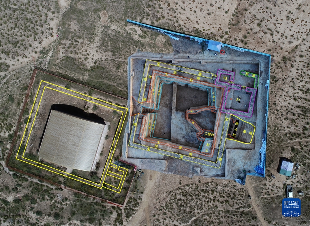 “2022年的工作重點是對2007QM1進行保護性清理發掘。”中國社會科學院考古研究所副研究員韓建華介紹,目前2007QM1清理發掘工作已經完成。據介紹,2007QM1位于2018血渭一號墓西側,緊挨2018血渭一號墓西塋墻。早年已發掘出塋墻、地上建筑、墓道、甬道、照墻和墓室,但未公布考古資料。為保護展示遺址,經重新發掘,確認該墓墓園形制和規模與2018血渭一號墓墓園相似。