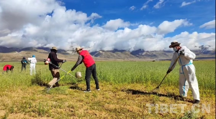 圖為國家牧草產業技術體系拉薩綜合試驗站曲尼帕基地燕麥種子秋收搶收工作(海拔3760米)