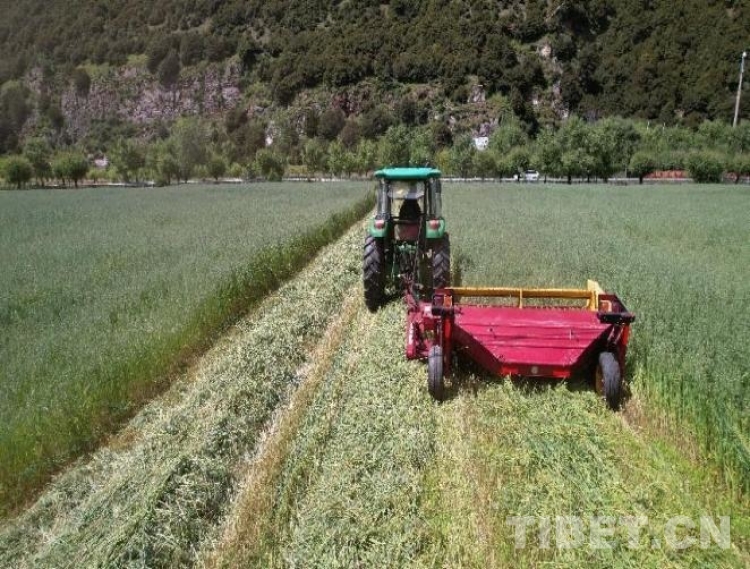 拉薩市墨竹工卡縣扎雪鄉其朗村村民在收割牧草