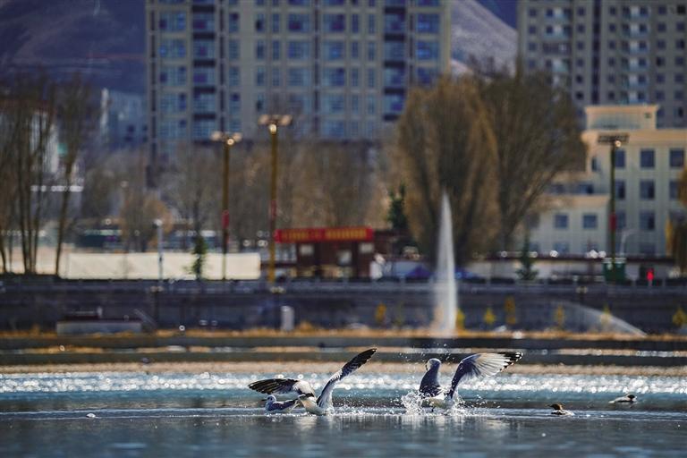 候鳥大約是拉薩入冬的標志。初冬時節,拉魯濕地和拉薩河邊,到處都是從遠方飛來越冬的黃鴨、斑頭雁。隨著拉薩生態環境更加優美,這些可愛的精靈選擇在此越冬,讓許多觀鳥愛好者心動。每天清晨天還未亮,他們就早早地守候在水邊,只為記錄下候鳥迎著第一縷朝陽翩然飛舞的景象。