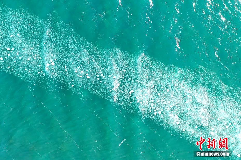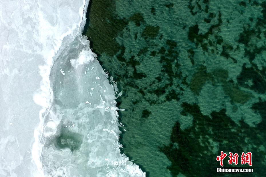 近日,素有“高原藍(lán)寶石”之稱的青海湖開始進(jìn)入冰封期。青海湖水體周邊的零星結(jié)冰,青海湖西部邊緣、北部湖岸區(qū)、鳥島、青海湖斷崖等地出現(xiàn)成片結(jié)冰區(qū)。航拍畫面中可以看到湖心范圍尚有大面積未結(jié)冰區(qū)域。青海湖是中國最大的內(nèi)陸咸水湖。冬日里的青海湖,寧靜而內(nèi)斂。千里冰封,宛如童話世界。封凍的湖面如同破碎的“玉帶”,形成獨特的景觀。張世偉 攝