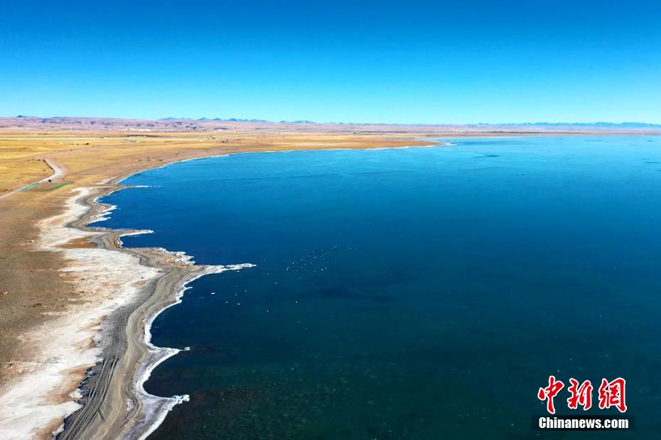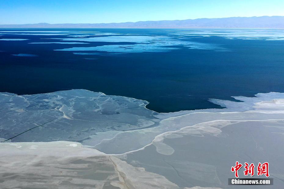 高原藍(lán)寶石青海湖 湖面封凍如破碎“玉帶”