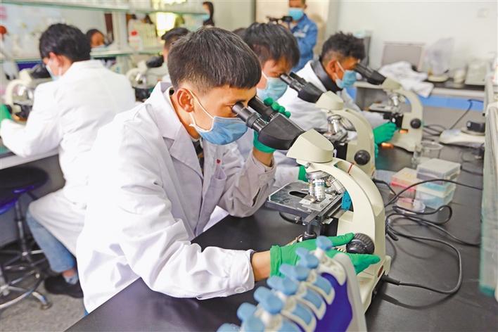 圖為西藏職業(yè)技術學院2020屆赴區(qū)外企業(yè)就業(yè)的畢業(yè)生在實驗室進行崗前培訓。記者 潘璐 王莉 攝
