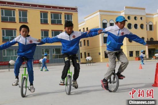 圖為鄉村學校少年宮的孩子們正在騎獨輪車。 才讓本 攝
