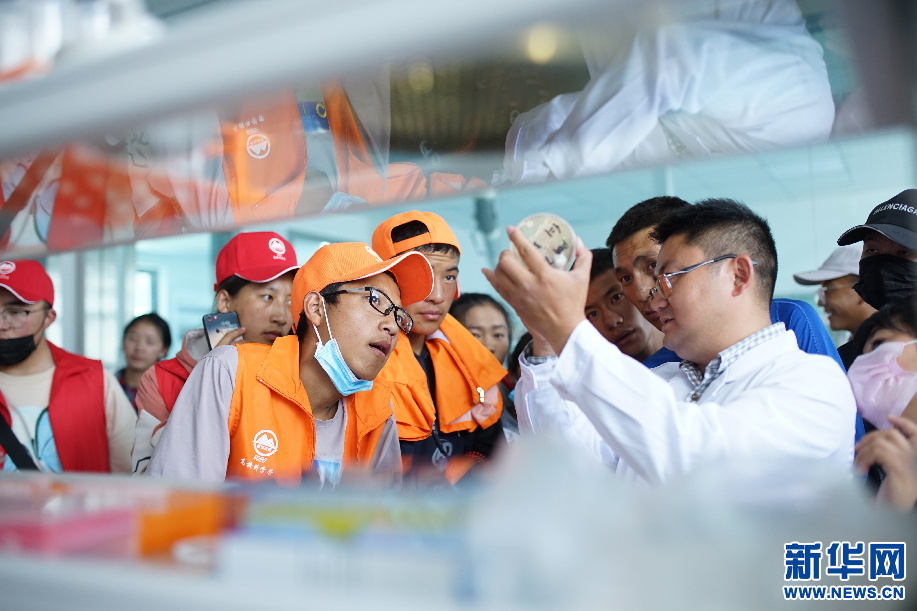 學(xué)生在參觀西藏大學(xué)的生物實驗室(8月12日攝)。新華社發(fā) (武建偉 攝)