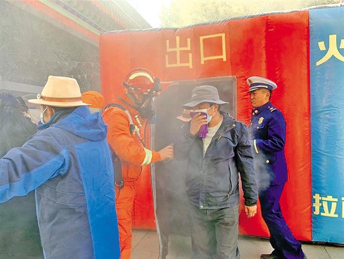 拉薩市消防救援部門組織市民開展火災疏散逃生應急演練。