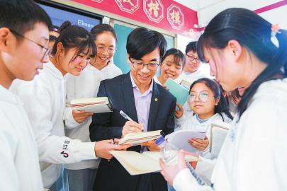 分享結束后,學生們圍著孟憲實開展進一步交流,并紛紛請他簽名。“我是一名美術藝術生,但是一直對歷史很感興趣。孟老師的講解更是讓我堅信,以后要更深入地了解歷史知識,在之后的美術作品里融入更多的歷史氣息。”高二年級的潘虹羽,中午吃飯時依然在回味這場共讀活動。