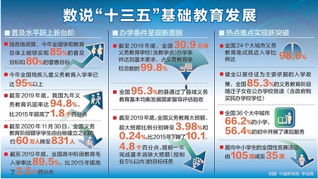 截至2019年底,全國30.9萬所義務教育學校(含教學點)辦學條件達到基本要求,占義務教育學校總數的99.8%;全國95.3%的縣通過縣域義務教育基本均衡發展國家督導評估驗收。[詳細] -