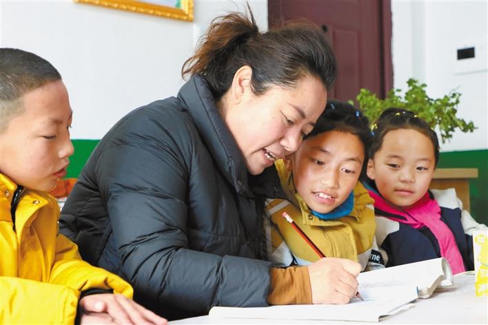 圖為寒假期間,德西拉措給福利院孩子輔導作業。桑鄧旺姆 攝