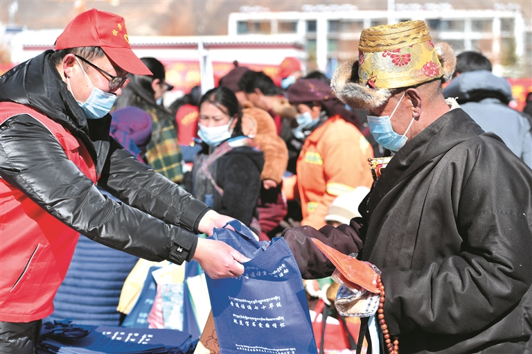 隨著春節(jié)、藏歷新年腳步越來越近,熱熱鬧鬧的年味越來越濃。2月1日,由拉薩市委宣傳部牽頭,市文聯(lián)、市教育局、市司法局、市衛(wèi)健委等16家單位走進(jìn)墨竹工卡縣新時代文明實踐中心,開展文化科技衛(wèi)生法律愛國愛教服務(wù)“五下鄉(xiāng)”活動,為當(dāng)?shù)厝罕娝蜕闲履甓Y物。