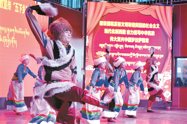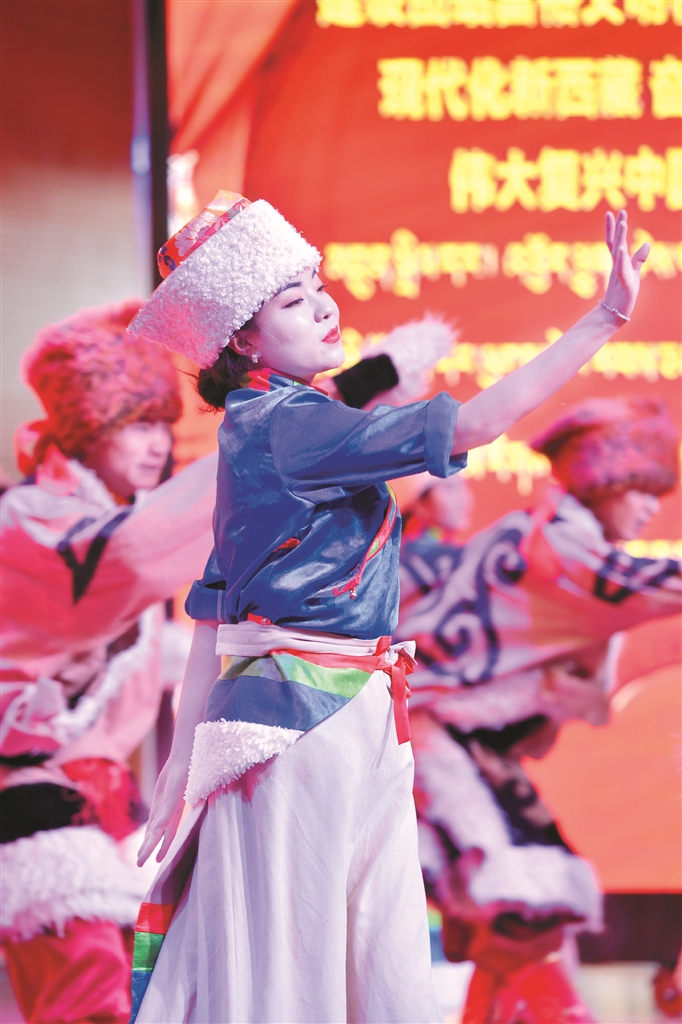 活動現(xiàn)場,演員們?yōu)榇蠹規(guī)砹司实母栉璞硌荨D片由拉薩融媒視覺組攝