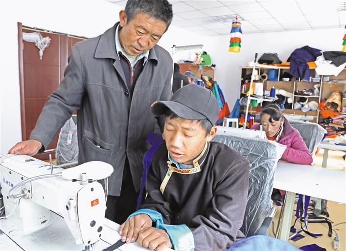 圖為洛扎縣殘疾群眾在該縣殘疾人就業培訓基地參加縫紉技能培訓。 巴桑旺姆 攝