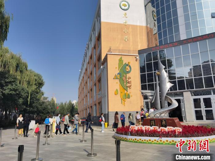 圖為虎臺小學新生家長有序進入教學樓。 李雋 攝