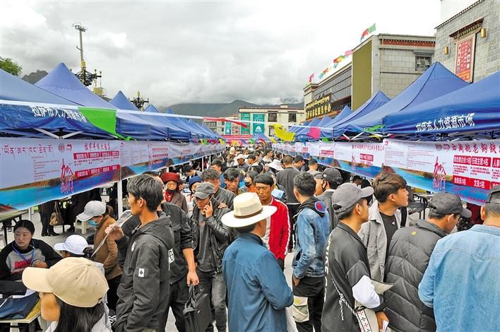 拉薩市農牧民轉移就業促增收大型專場招聘會現場。