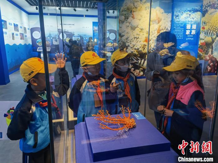 圖為正在參觀珊瑚展的西藏小學生。 趙延 攝