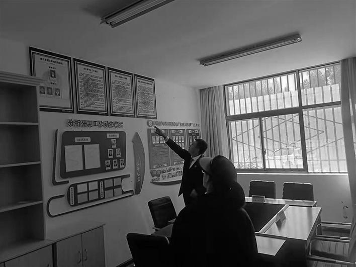 圖為拉孜縣法院訴前調(diào)解員在扎西崗鄉(xiāng)“法治宣教中心”檢查工作。