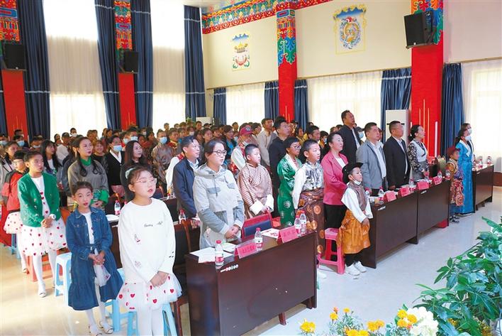 在中國拉薩SOS兒童村開村20周年慶祝活動(dòng)上,SOS村全體干部職工和孩子們共唱國歌。
