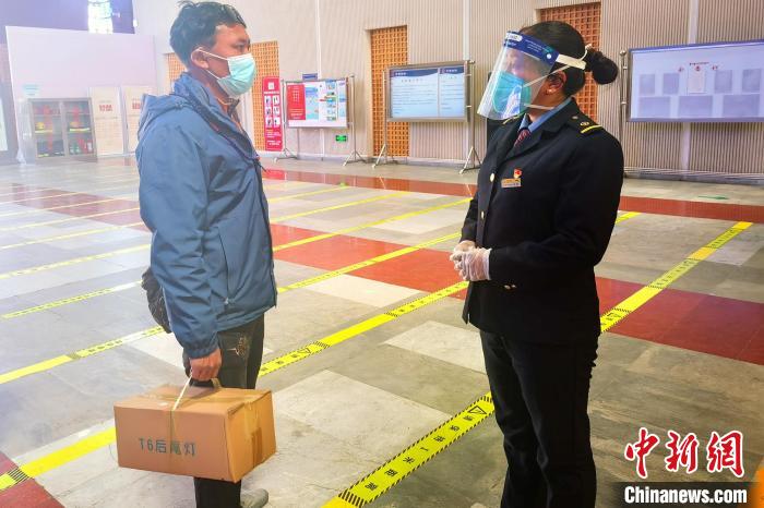 圖為羅布在林芝火車站引導乘客。 國鐵青藏集團有限公司 供圖