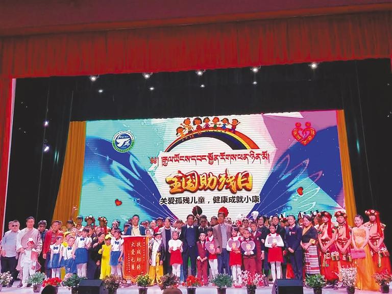 圖為在全國助殘日,全校師生開展“關愛孤殘兒童,健康成就小康”活動。