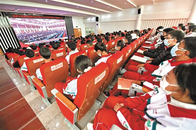 圖為拉薩中學的師生觀看慶祝中國共產主義青年團成立100周年大會直播。 記者 唐斌 攝
