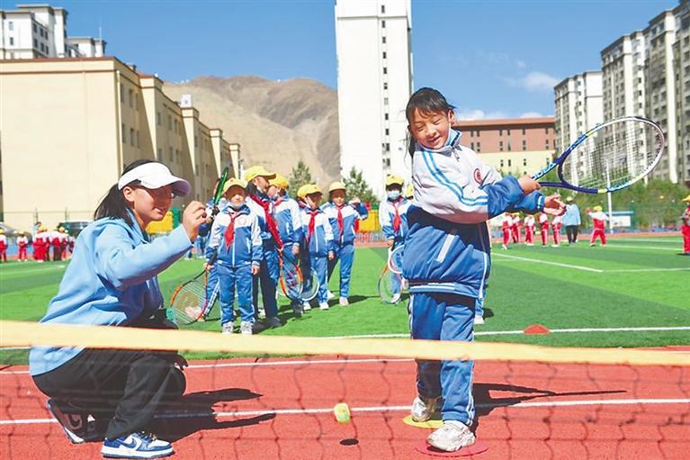 西藏:網球進校園 大手教小手
