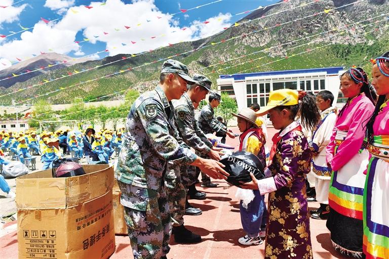 近日,李家偉與戰友一起,利用端午節假期,前往拉薩市林周縣阿朗鄉雙語小學,將他們用正能量獎金購買的愛心物資送到了孩子們的手中。