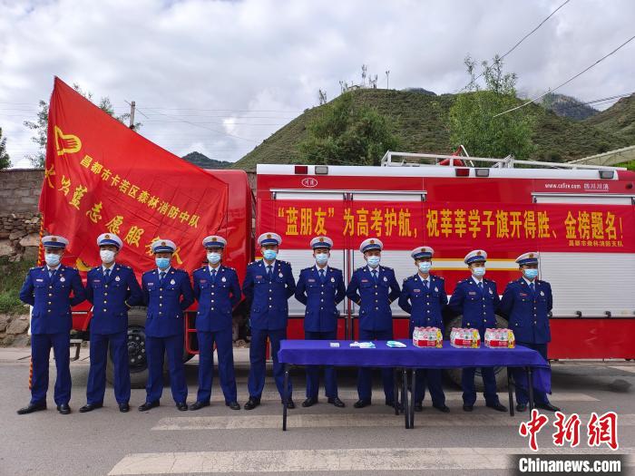 圖為消防指戰員為考生送去暖心“大禮包”。卡若區森林消防中隊 攝