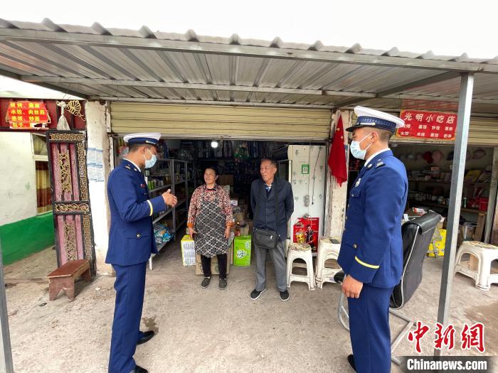 圖為消防指戰員排查考點周邊社會單位。卡若區森林消防中隊 攝