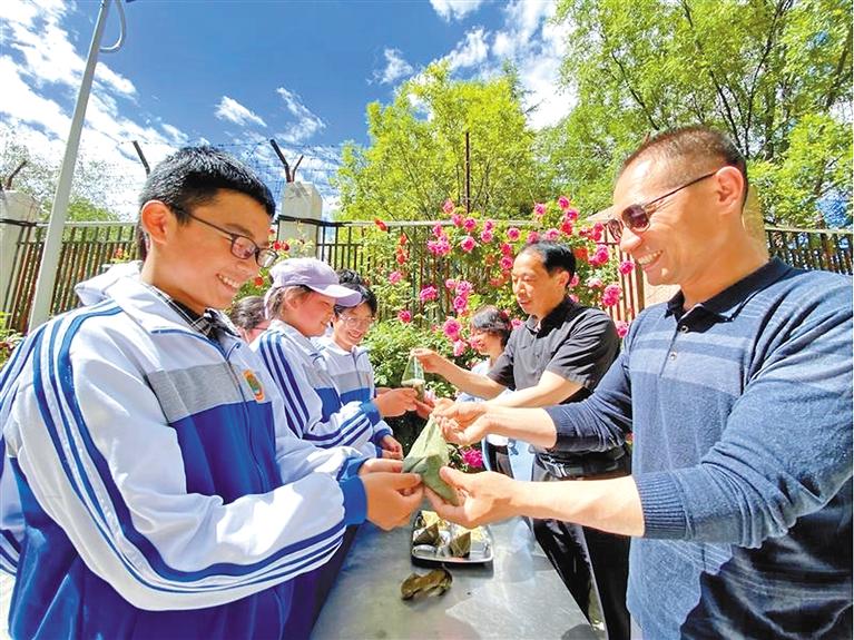 為弘揚中華優秀傳統文化,促進漢藏文化交流,端午節期間,拉薩市第一中學教育援藏團隊的老師為學生送上來自江蘇老家親人包的粽子。