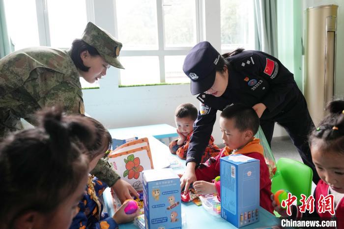 在活動中,戍邊民警與解放軍官兵,通過孩子們能夠接受的故事、游戲等方式,讓孩子們感受到幼年生活的快樂與多彩,同時引導他們珍惜現在最美的生活,也讓孩子們知道,他們是祖國最美的花朵,要茁壯成長,要熱愛自己的祖國,要熱愛美麗的邊境家園,要把家園守護好。