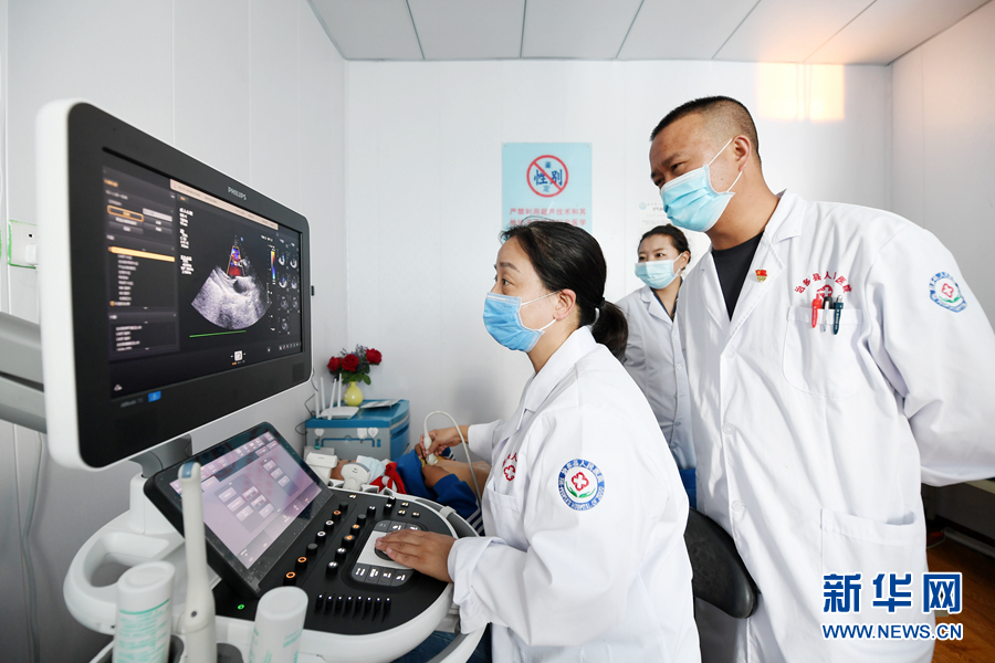 8月11日,在青海省玉樹藏族自治州治多縣人民醫(yī)院,北京援青醫(yī)療隊的專家們?yōu)楫數厍槿R縣、治多縣0-16歲先天性心臟病兒童開展篩查活動。